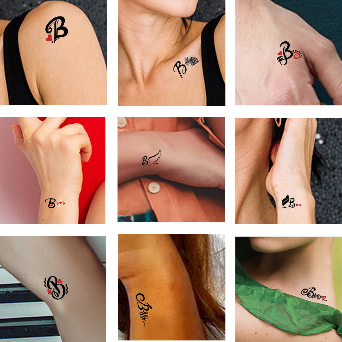 B Name Alphabet Tattoo Waterproof For Men and Women Temporary Body Tattoo