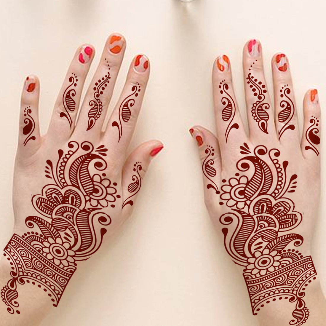 Full Hand Henna Tattoo Flower Both Hand Realistic mehndi color on hand For Women