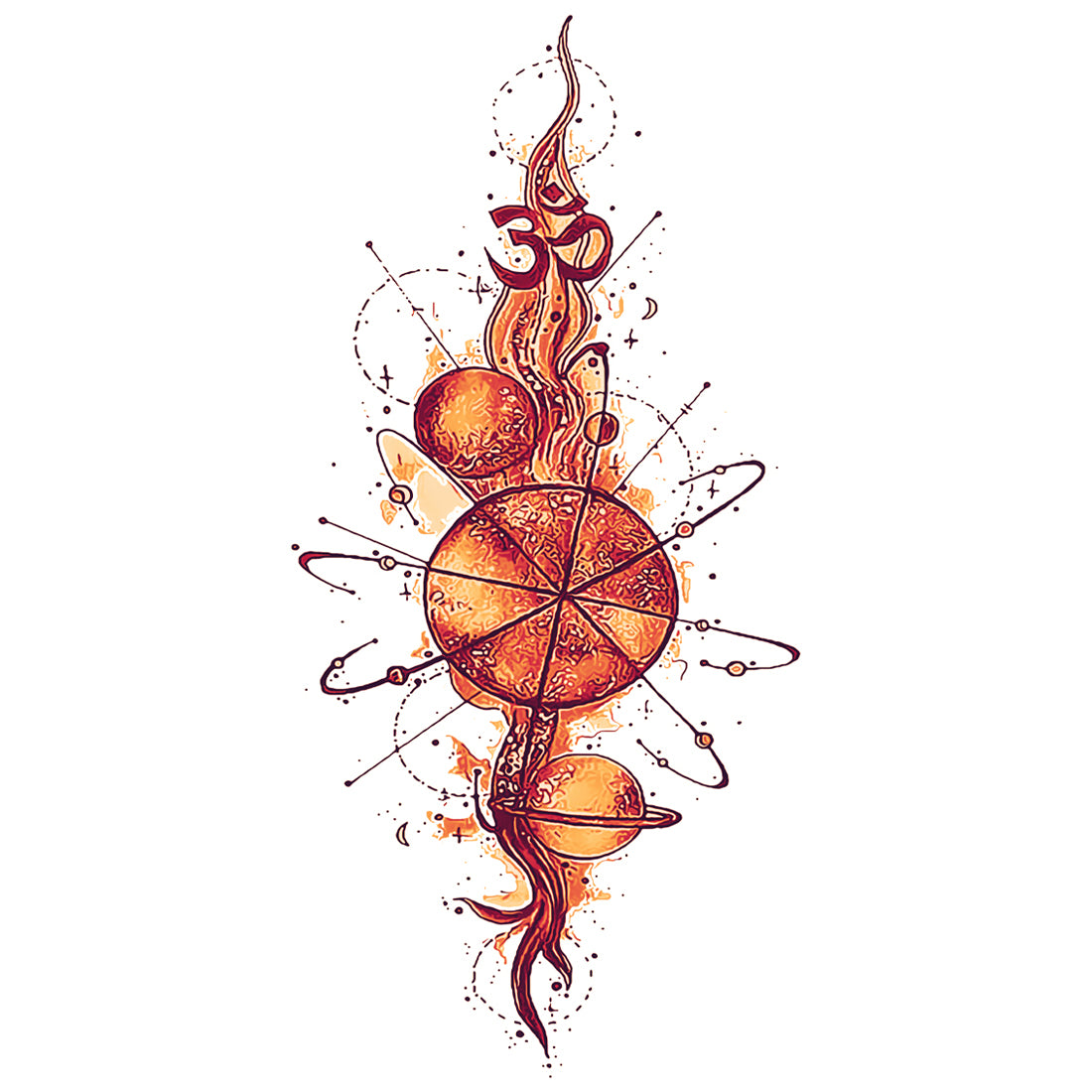 Galaxy with Om Tattoo Fire Waterproof Boys and Girls Temporary Tattoo