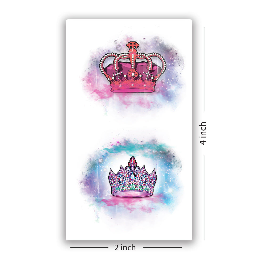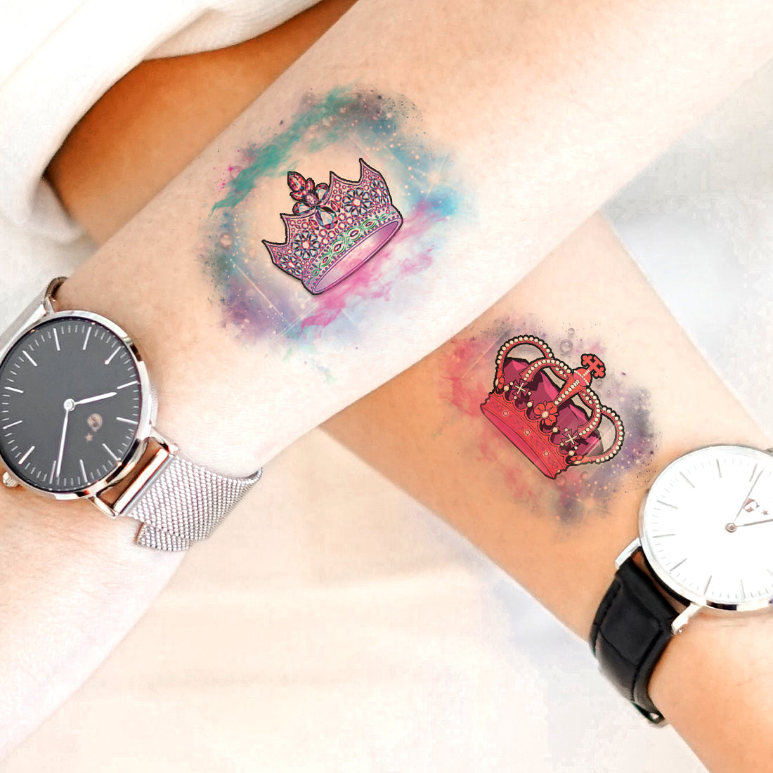 King and Queen Multicolor Crown Tattoo Waterproof Temporary Body Tattoo