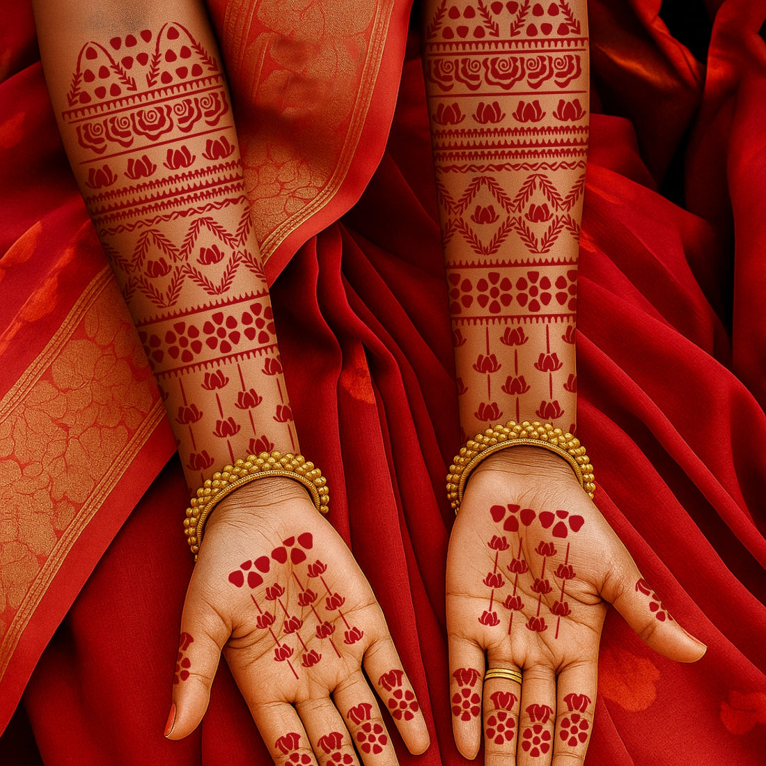 Lotus And Floral Mehndi Stencil Sticker With Traditional Patterns For Hands And Fingers Is A Timeless Choice For Anyone Who Loves Graceful And Meaningful Henna Art. Featuring Lotus Flowers Combined With Classic Floral Motifs, This Stencil Brings Out Beauty And Tradition In Every Design. The Lotus, Symbolizing Purity And Positivity, Blends Perfectly With Floral Elements To Create Patterns That Suit Any Occasion. From Weddings And Festivals To Casual Gatherings, These Stencils Help You Achieve Professional-Looking Mehndi Designs With Ease.The Stencil Is Simple To Use, Making It Ideal For Both Beginners And Those Experienced In Mehndi Application. With Its Balanced Patterns, It Covers Hands And Fingers Beautifully, Adding Elegance And Charm. Whether You’re Preparing For A Celebration Or Want To Enjoy Mehndi Art For Fun, This Stencil Ensures Neat And Attractive Results Every Time. A Perfect Blend Of Tradition And Style For Girls And Women Of All Ages.