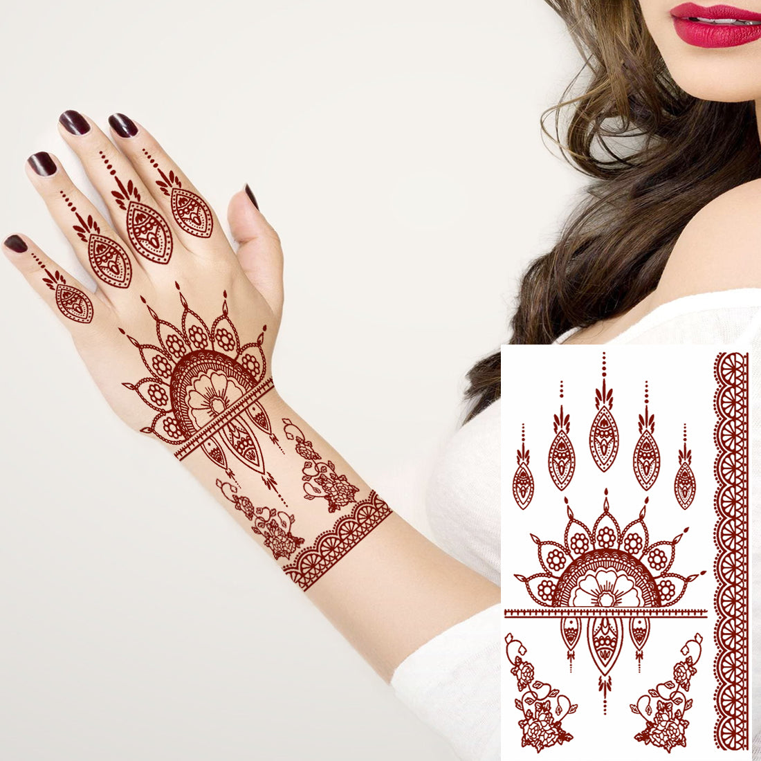 Mehndi Tattoo Flower Henna Tattoo Hand Leaf Boder Tattoo For Women Temporary Tattoo