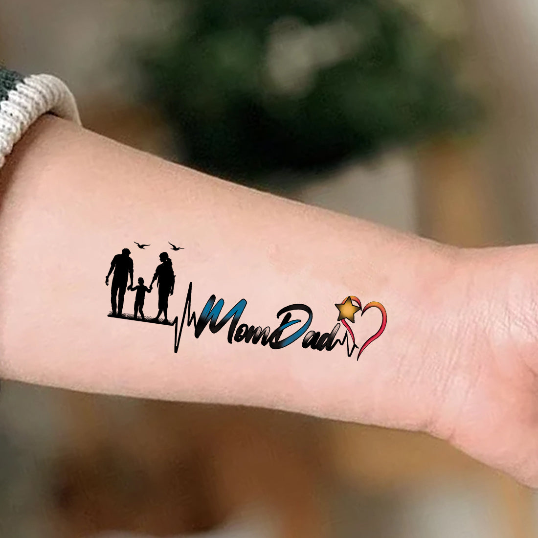 Mom and Dad Tattoo Family Heart Waterproof For Men and Women Temporary Body Tattoo