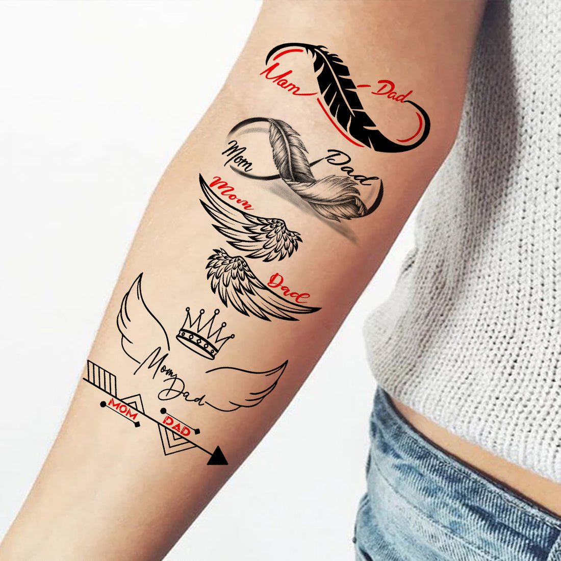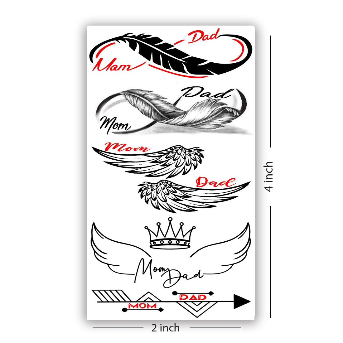 Mom Dad Wings Tattoo Love Feathers Waterproof Boys and Girls Temporary Body Tattoo