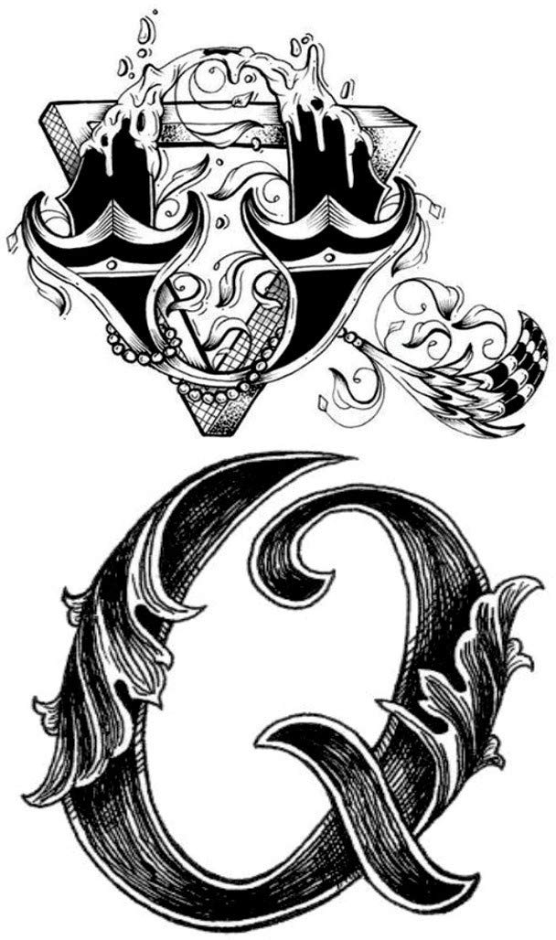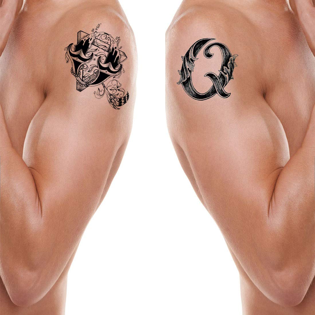 Name Q Letter Two Design alphabet Waterproof Temporary Body Tattoo For Girls Men Women