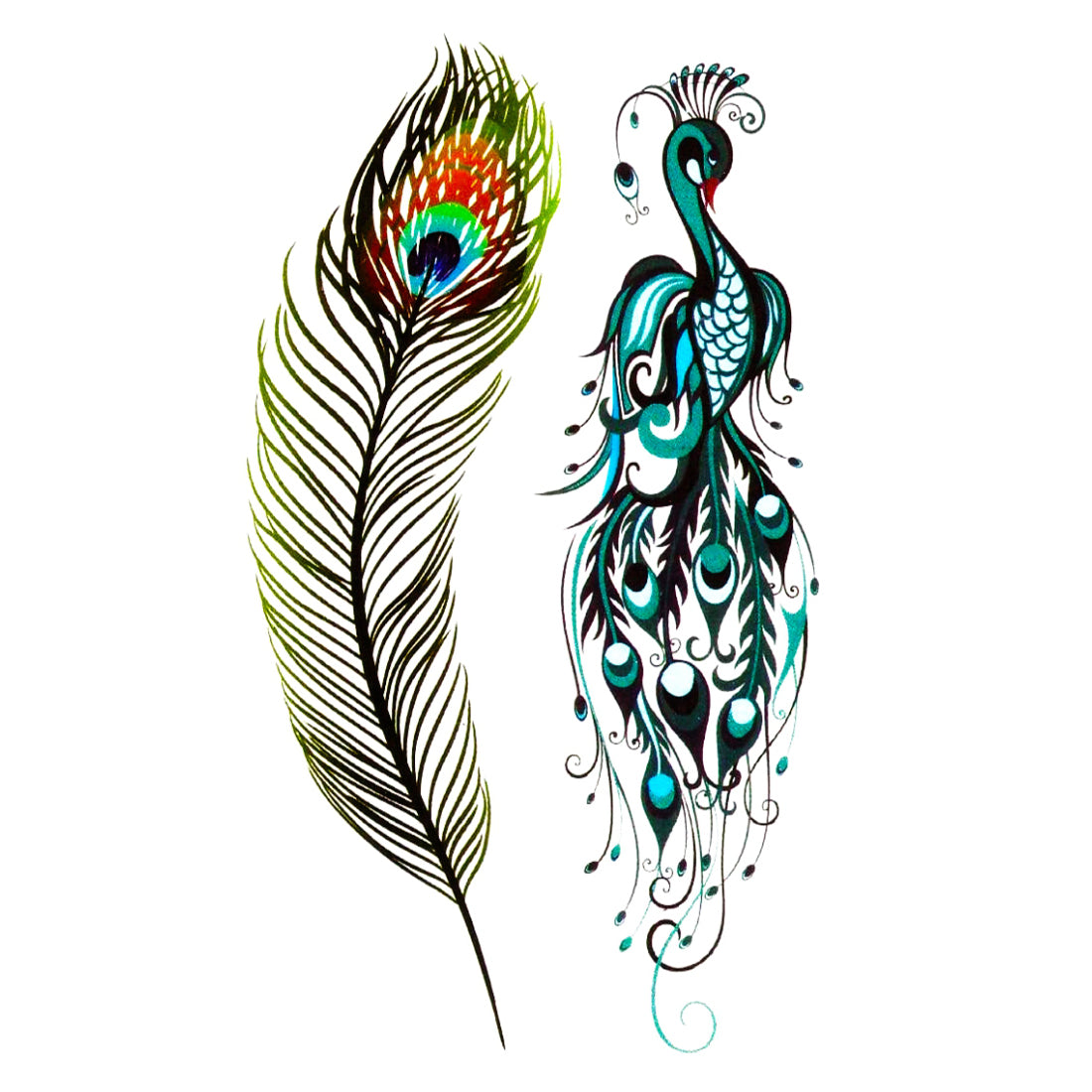 Peacock Tattoo Animals Feather Waterproof Boys and Girls Temporary Body Tattoo