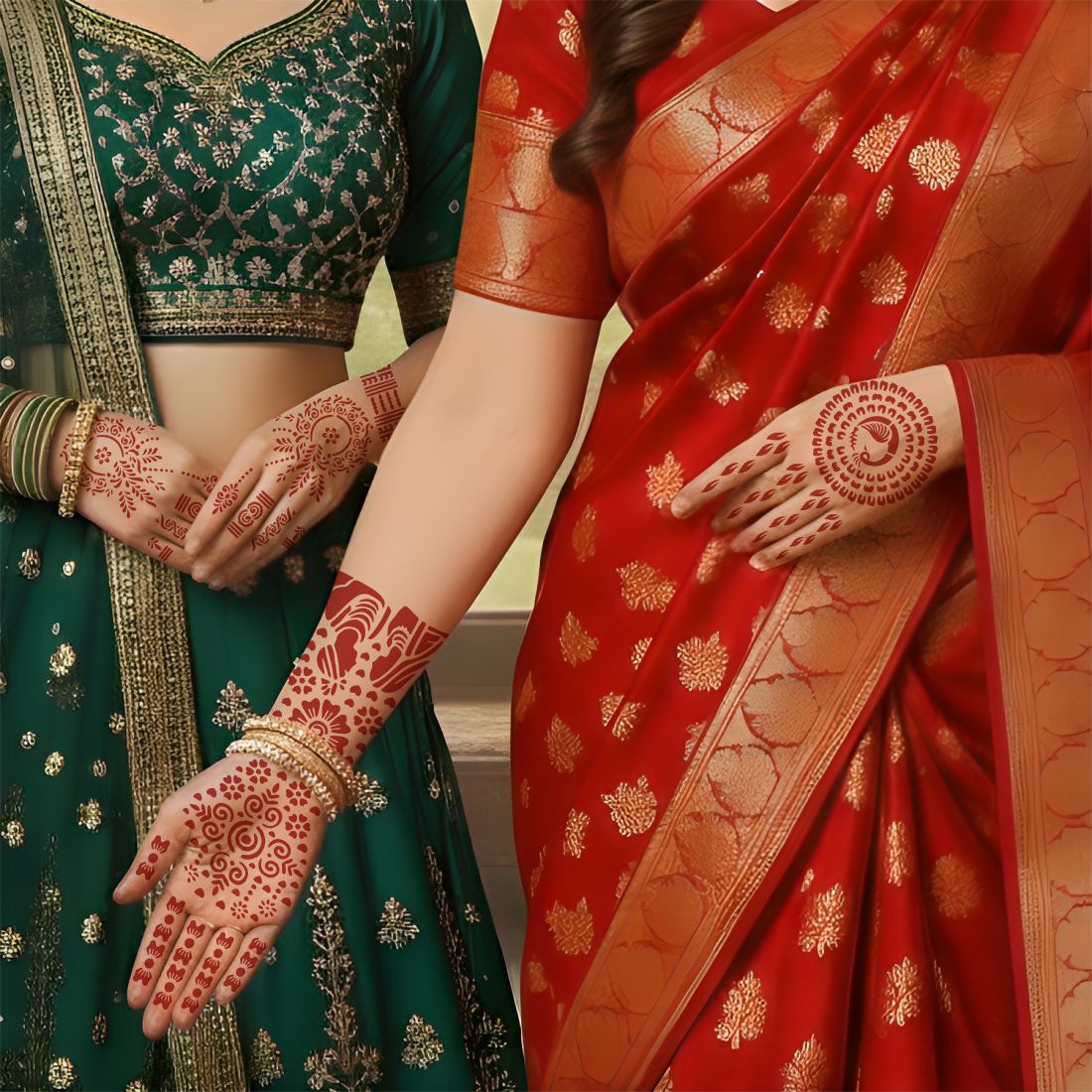 Make your wedding moments even more special with this bridal mehndi stencil sticker featuring a beautifully detailed bride and groom design. Crafted for those who love traditional and romantic themes, this stencil brings elegance and charm to your hands with minimal effort. The symmetrical elements are perfect for enhancing palms, backhands, or wrists, while maintaining an artistic flow that fits bridal style. Whether you’re a bride preparing for her big day or someone attending a festive ceremony, this stencil is a time-saving and creative solution. The crisp lines and intricate artwork reflect cultural beauty, creating a rich, celebratory look for any bride-to-be.