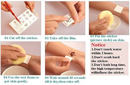 ABOUT TEMPORARY TATTOO WALA TATTOOS Our waterproof temporary tattoos are great for both adults and kids, and are perfect for any occasion: Birthday parties, play dates, girls’ night out, bachelorette parties, sleepovers, weddings, bridal showers, music festivals, beaches, anywhere really ! Our beautiful metallic tattoos are glamorous and fun – easily customize and create your own unique body art! Apply our shimmer temporary tattoos anywhere on your body: ankle, wrist, back, chest, arm, nails, shoulder, forearm, hands and more. Don’t wait and start showing off your new hot look at your next event, or gift it to loved ones! PERFECT FOR: The Pool The Beach Parties Festivals Concerts Bachelorette Parties and more... Feather: 1. Non-toxic and Safe. 2. Extremely durable surface. 3. Various colors, shapes and size for your choice. 4. Easy to apply, transfer and remove without any glue. HOW TO APPLY 1) Clean and dry skin completely. 2) Cut out design of your choice and remove transparent film. 3) Place temporary tattoo face down on skin. 4) Press damp cloth / sponge against tattoo and hold for 30 seconds. 5) Gently lift corner to check if tattoo is fully transferred. If not, damp and press again. That’s it! If done correctly, you Temporary Tattoo Wala Tattoos can last for several days. Temporary Tattoo Wala Family Tattoo Waterproof Men and Women Temporary Body Tattoo