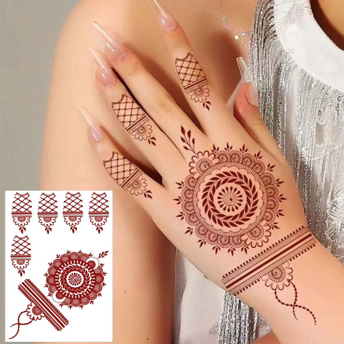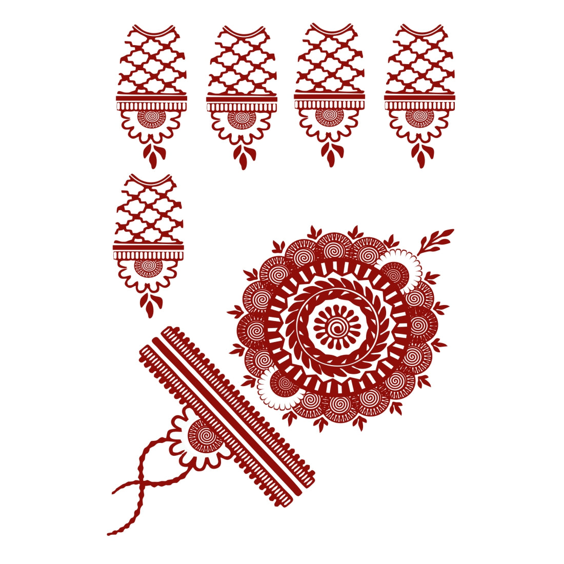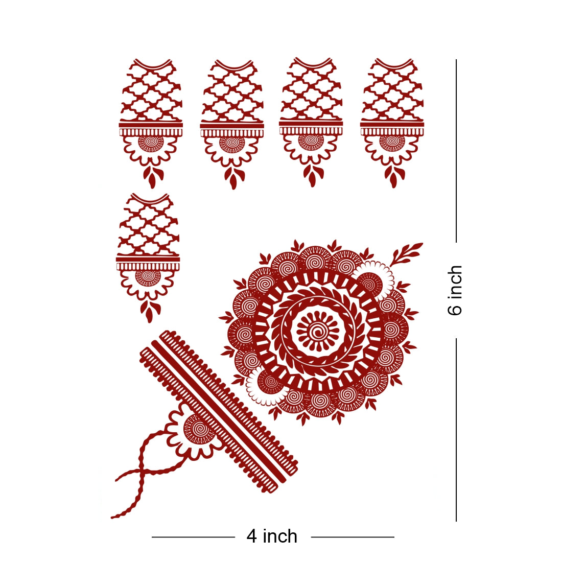 voorkoms Red-Brown Henna Tattoo Sticker Temporary Tattoos for Women Mandala Mehndi sticker for Hand (Size -6x4) 1Pair (Both Hand)
